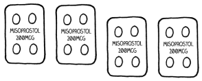 - Use 4 misoprostol pills every 3 hours (12 pills total, see instructions below).